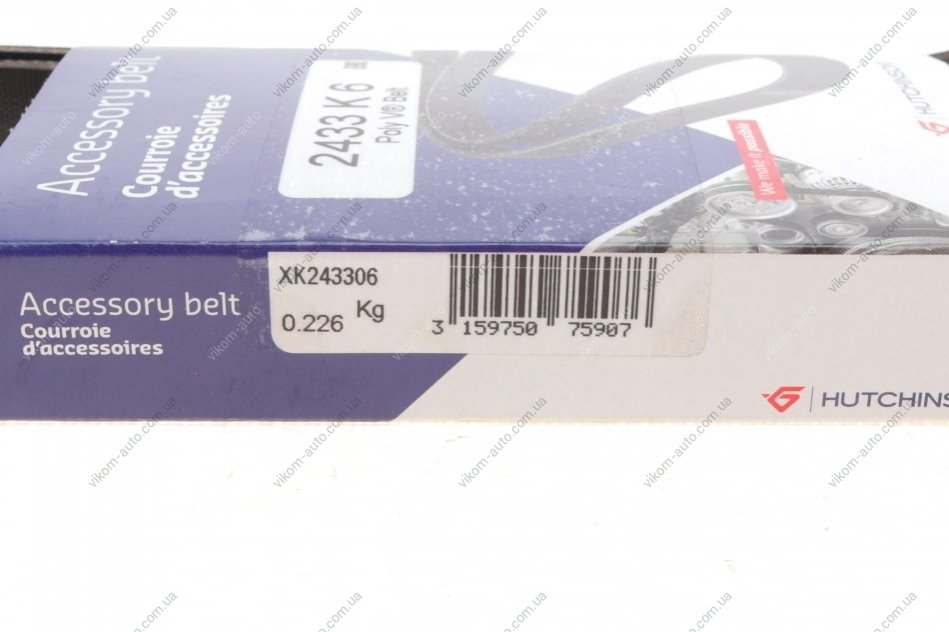 Ремень генератора Jeep Cherokee 2.8 CRD 08- (6PK2433) HUTCHINSON 2433 K 6