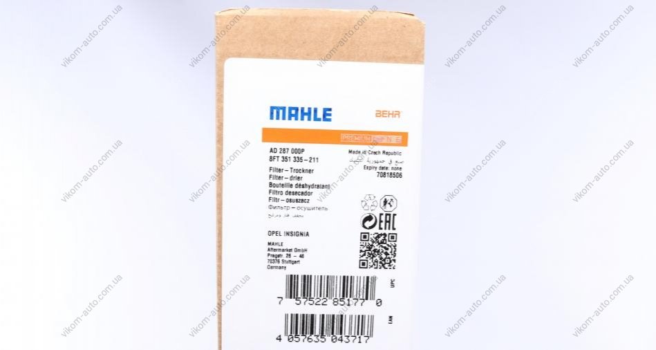 Осушувач кондиціонера Opel Insignia 08-17 MAHLE / KNECHT AD 287 000P