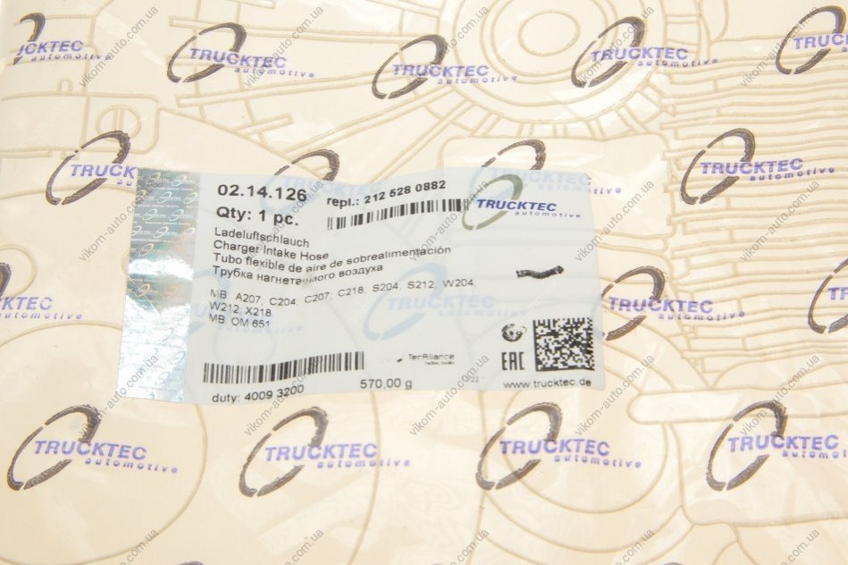 Патрубок інтеркулера (R) MB E-class (W212)/C-class (W204) 08-16 (OM651) TRUCKTEC 02.14.126